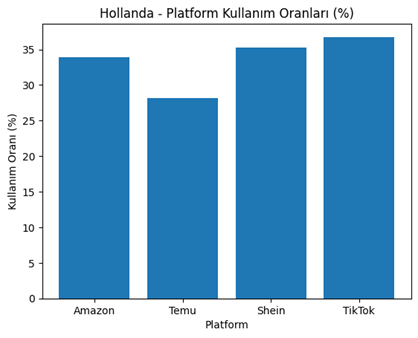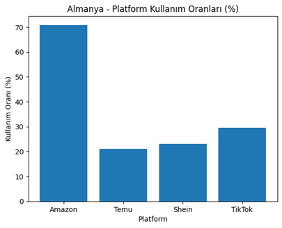 | Ülke | İnternet Kullanım Oranı | Amazon Kullanım Oranı | Shein Payı | Temu Payı | Öne Çıkan Platform Tercihi | Not |