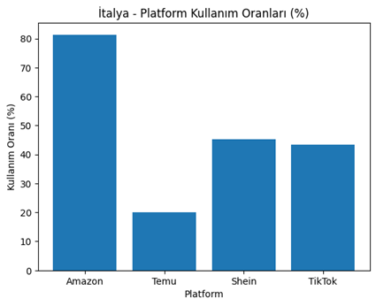 | İtalya | %85+ | ~%80+ | %40+ | %20+ | Amazon, Shein | Moda odaklı güçlü pazar |